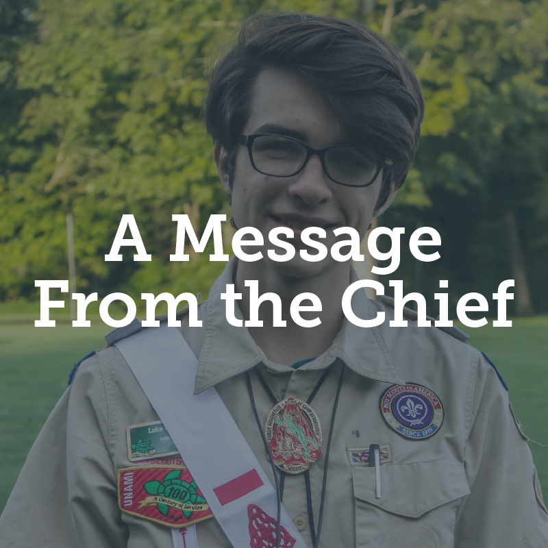 Lodge Chief Luke Cihak has some welcoming words to share with the members of Unami Lodge, One.
