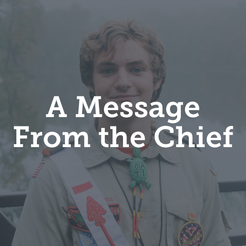 Lodge Chief Aidan Campbell has some welcoming words to share with the members of Unami Lodge, One.